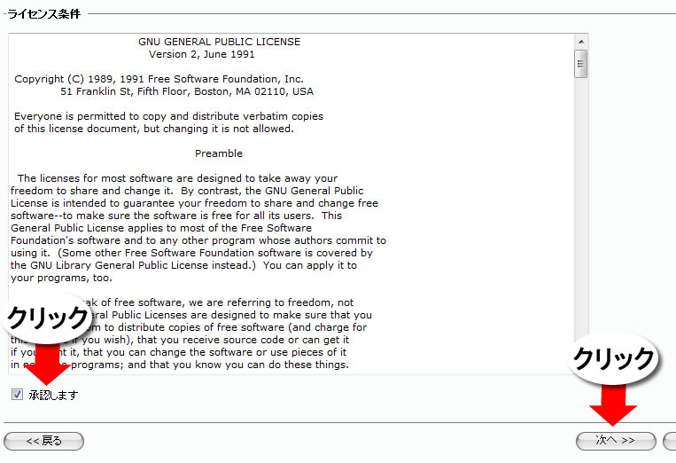 ライセンスの承認を行ってください。その後「次へ」進んでください。