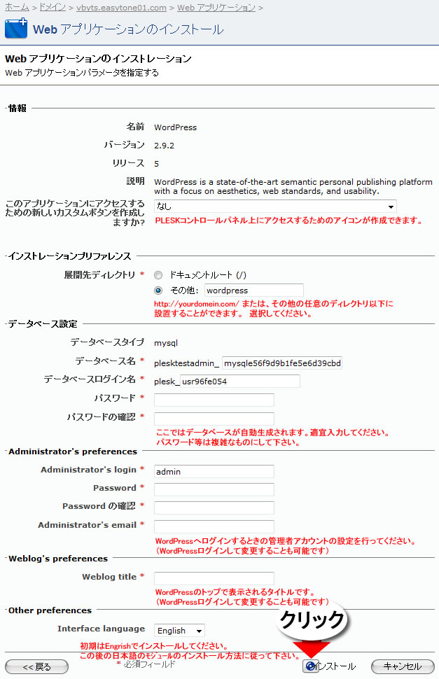 WordPress2.9.2 の自動インストール方法 (Metalプランのみ対応)