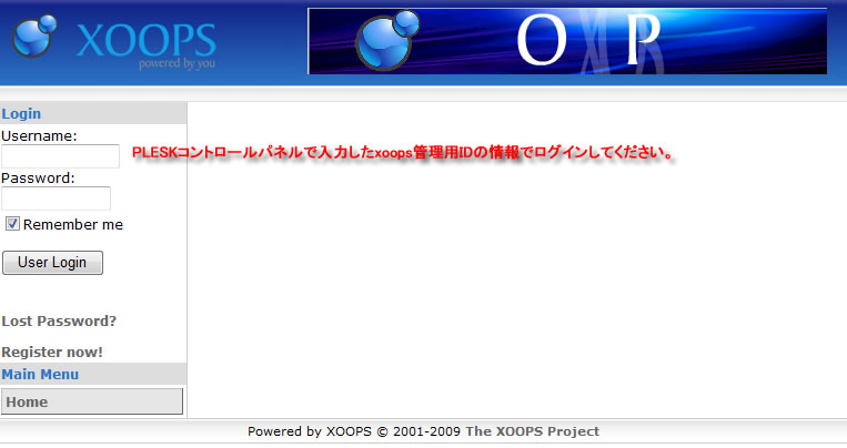 Xoops2.3.2b の自動インストール方法 (Metalプランのみ対応)