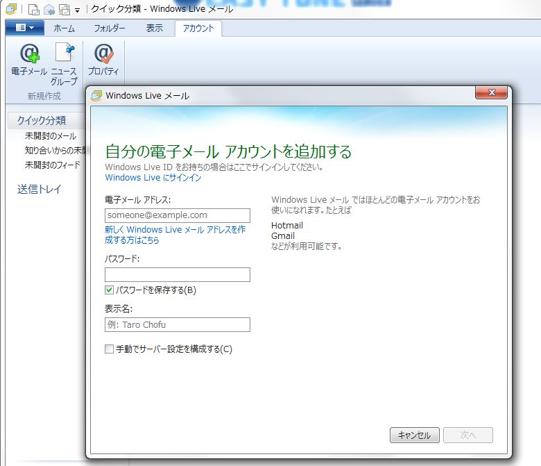 ●Windows Live メール での設定方法(Windows)